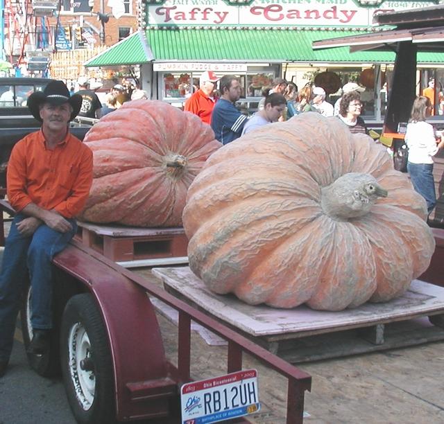 Here is Buddy with his & Karen's 931.5 & 924 lb pumpkins. Look at the stem on that 924 lb'r, it taped out in the low 800's but weighed 924. We were all joking that 20 lbs of it was stem.
