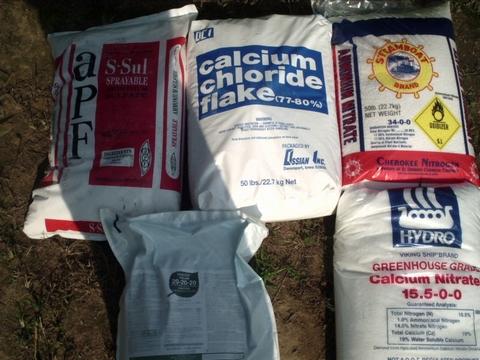 20-20-20 nutri leaf soluble fert,ammonium sulfate sprayable,calcium nitrate,calcium chloride flakes,liquid calcium.