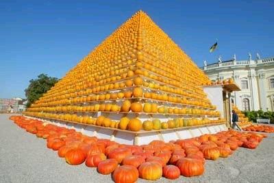 A giant pumpkin pyramid towers in front of a baroque castle in Ludwigsburg near Stuttgart, Germany, on Sept. 3. The 45-feet-high pyramid is part of the exhibition "Cleopatra's Mysterious World of Pumpkins," which continues until Nov. 3 and shows 600 different kinds of pumpkins.