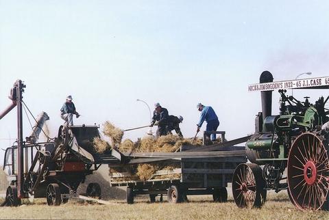 As part of the pumpkin festival, there's a threshing demonstration with this 1922 Case steam tractor.
