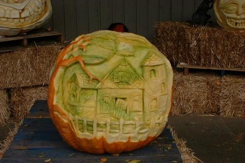 Four sculpted pumpkins