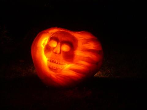 Four sculpted pumpkins