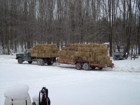 adding about 130 bales of hay to the manure mountain today