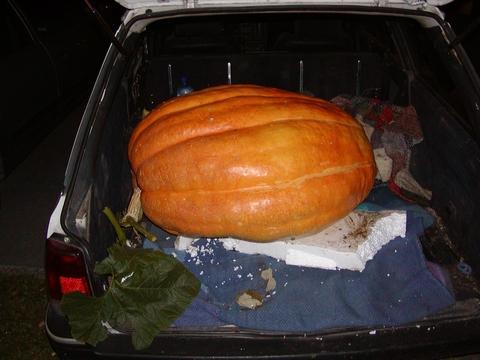 My first pumpkin. It was grown in a small garden in Ljubljana, Slovenia. 110 kg is Slovenian urban record :-) This year I will grow it on the roof to gain more space.