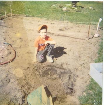 This is my son waiting for his pumpkin to grow.