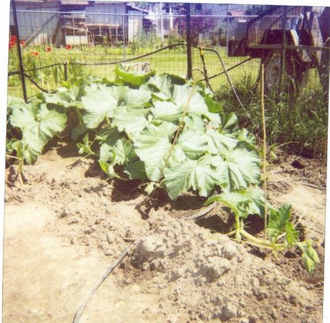 This is my Cucurbita. I have about ten side shoots coming out from under the leaves, and Im going to cover those babies. vine is getting thicker. Hope I can grow a big pumpkin.