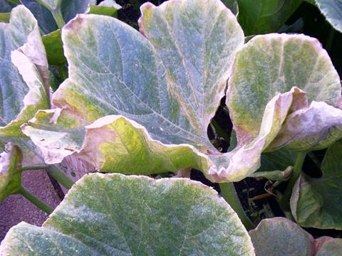 Please take a look at these ill pumpkin leaves. What might be the cause? Disease? Heat? What can be done to avoid the infection of further leaves? If it is a disease will it overwinter in the soil and occur again next year? If you have any ideas or suggestions please email me at: [email protected]