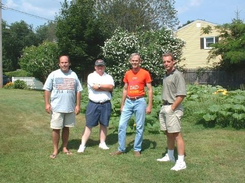 The Insane Pumpkin Patch Posse from left to right. David Garrell (David G), Glenn Andrews (LIPumpkins), Bart Toftness (Bart) & Steve Jepsen (Tremor) assembled for a group photo in Bart's patch in Wallingford CT.