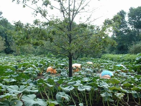You think tending 22 plants is easy? We counted about 20 pumpkins of note in the upper patch alone. And that's not counting the various shock absorbers strewn about the place.