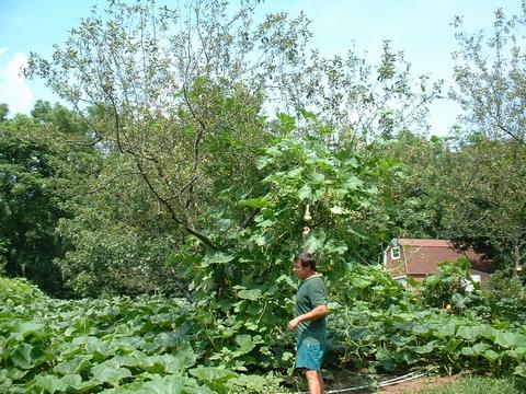 Alan makes good use of his entire patch. This tree & even the lattice over his deck are covered in gourds of all types.