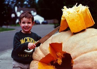a posed picture of my son and my 520 Tanner 2000 fruit, showing how thick it is.