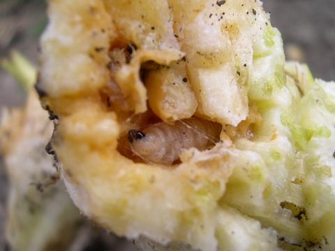 This is what you dont want to find in your pumpkin vines. With all the rain we had this year this guy and a few of his buddies had a feast on my Andrews455 plant. This was a plant with a main vine the size of a pop can and huge leaves but these little guys took their toll and I removed the plant.