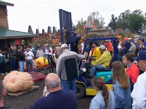 BP.Com memeber John Elliott being interviewed at the World Pumpkin weigh off as his 785.5Lbs pumpkin is weighed.