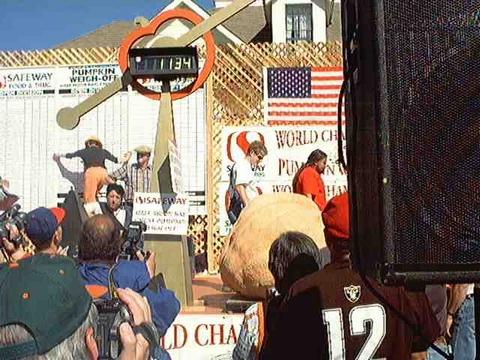 Joel,s Pumpkin as it was on scales. You can see the weight. It was hard getting a good camera shot