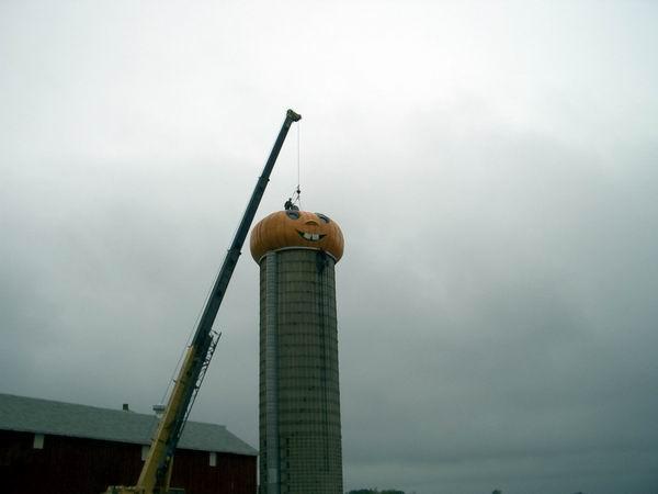 Hoisted to the top of a the farms silo.