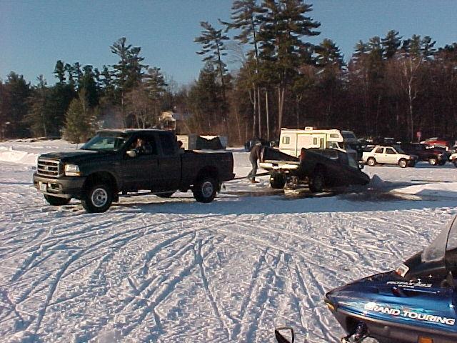 this helpfull guy tried 3 or 4 times to pull Justan out but had no luck, as a matter of fact his boot got caught behind the brake pedel and he backed up into the dodges trailer hitch,time for a new gate on the ford!