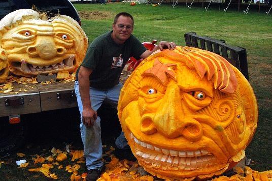 this pumpkin was grown by nikki hunt 742lbs . this carving took 4 hours too carve .
