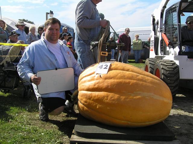 John Doucet displays his 485 pounder at Frerich Farms Oct 7, 2006 SNGPG Giant Pumpkin Weigh-off, in Warren, RI
