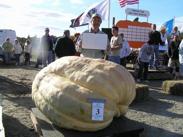 Joe Jutras on North Scituate, RI brought this 1180 pounder, to the Frerich Farm 2006 SNGPG (GPC sanctioned)Giant Pumpkin weigh-off, and earned a solid 3rd place. He also won the long gourd competition with a world record 10.55 foot "long gourd entry" which he showed on Martha Stewart a few days later.