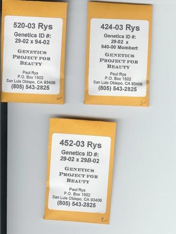 These are the Rys' seed packets that I mentioned in my Genetics Message Board post. Not a lot of info on these packets.