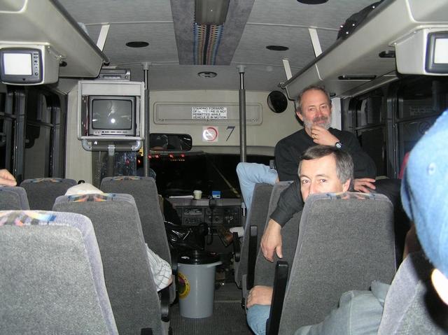 Here Steve Sperry and Joe Jutras relax while riding the bus, to the International Giant Vegetable Growers convention in 2007. The leased SNGPG bus, complete with driver, comfy seats and a few other things was the only way to go, when traveling 540 miles, to Ontario, from RI. We made it there, with no problems. A clogged fuel line on the way home delayed us for 1 hour, in Upstate New York.