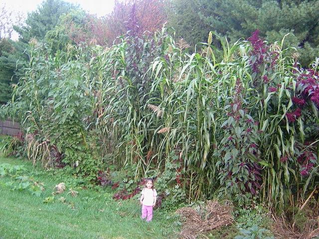 Picture of various corn, millet, sorghum, and amaranth. Many still not in flower at this time.