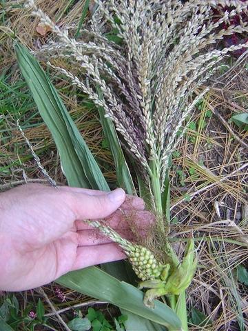 This plant couldn't decide weather to put on the tassel or an ear. There are actually several small ears just under the tassel. I had multiple plants with multiple ears directly under the tassel.