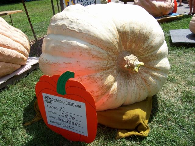 Marc Peterson's 2nd place pumpkin at 1081 pounds.