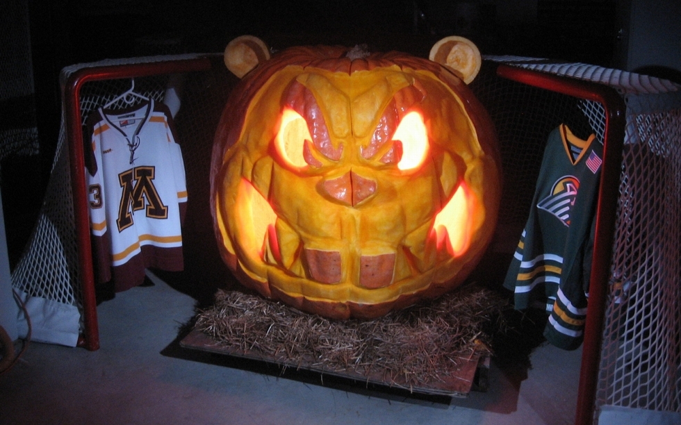 1028 Gienger 2009 Carved Mariucci Arena Minneapolis About to be filmed for the return from commercial screen by FSN.