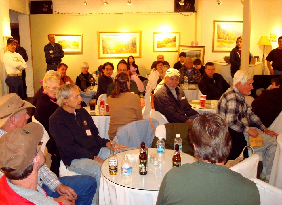 Its Napa's winter get-together for an evening of pizza and pumpkin talk. Here's Pete Glasier explaining some of his growing techniques to some of the growers.