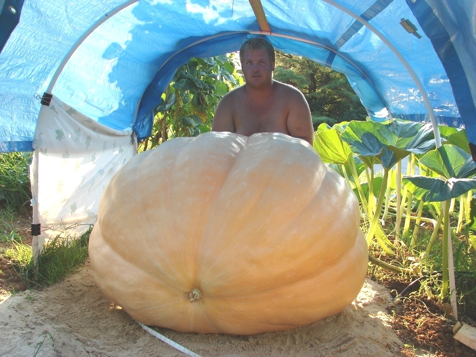 tim behind his pumpkin